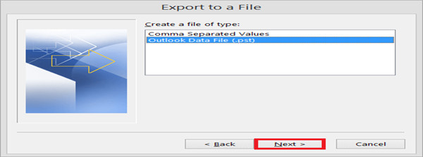 - Select Outlook Data File (.pst) option. Click Next.